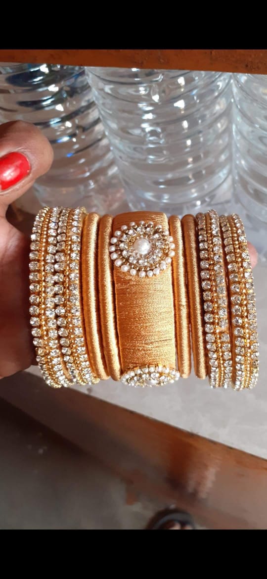 The bangles crafted with hands, covered by soft Silk thread, decorated by different beautiful stones and Kundans to match your outfit.