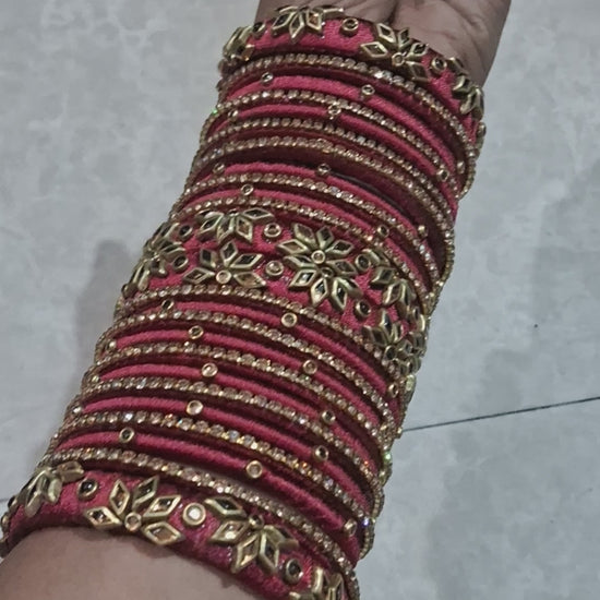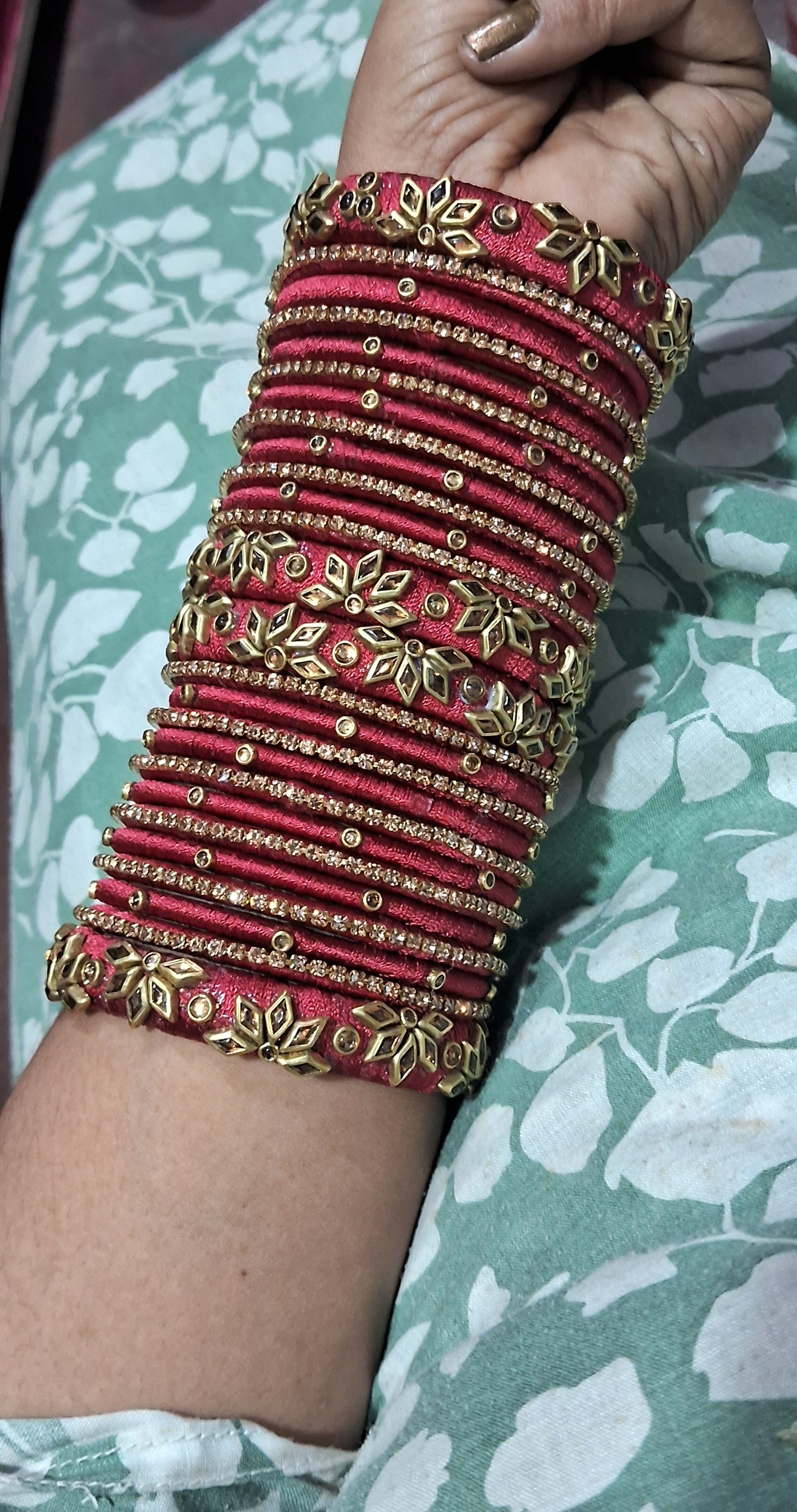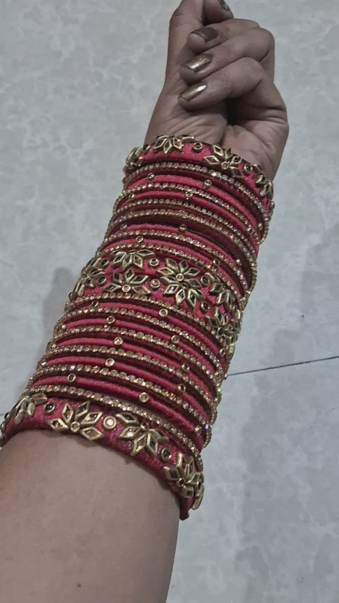 The bangles crafted with hands, covered by soft Silk thread, decorated by different beautiful stones and Kundans to match your outfit.